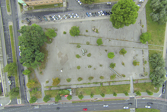 Potsdamer Straße, Ecke Sigismundstraße, Freifläche hinter dem Kiosk neben der Neuen Nationalgalerie